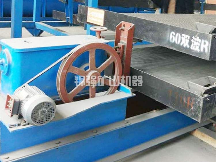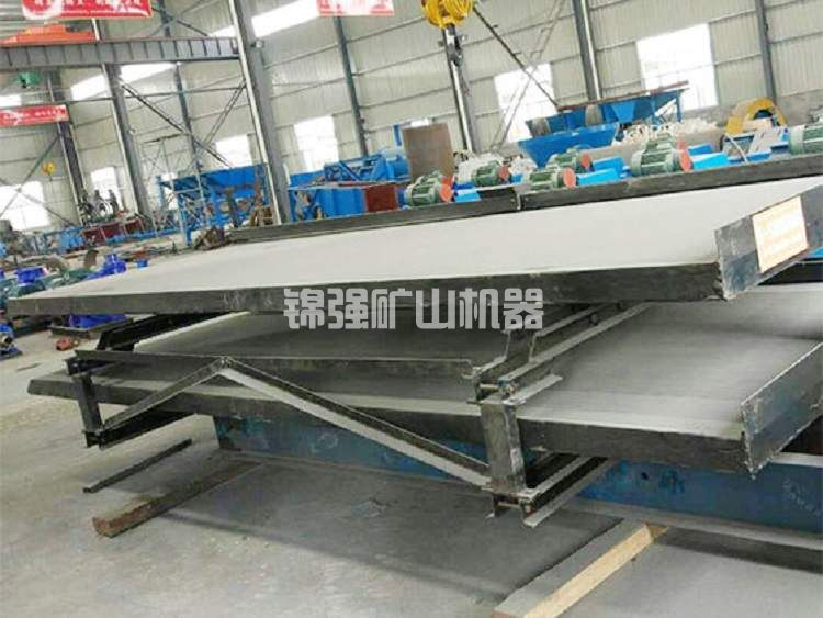 二、產品構造及材料:6S雙層選礦搖床選用與6-S大糟鋼支撐架搖床同樣方式基座,兩基腳置放于大糟鋼基座上,大糟鋼厚鋼板上上升電焊焊接糟鋼支撐架用以置放搖臥室床,搖床面選用在6-S單面搖床床表面提升上一塊規格與原來床體同樣的床體,左右雙層用厚鋼板聯接支撐點,他們的間隔400mm,自由空間約300mm。臥室床仍選用雙曲柄搖桿組織,彈黃盒在搖晃箱上,發動機曲軸、支撐桿、彈黃、遙桿等構件都相對應增加了規格,材料更為標準。床體為玻璃鋼防腐床體,6S雙層搖床上下一層規格均為1823*1558*4520mm。上下一層床體同用下一層床體的一套調坡設備,選用搖晃肘板支撐。其調節座板和底座的轉動斜線半經擴大至545mm,以融入弧形支撐點旋轉圓心點與牽引帶螺釘管理中心在同一平行線上。