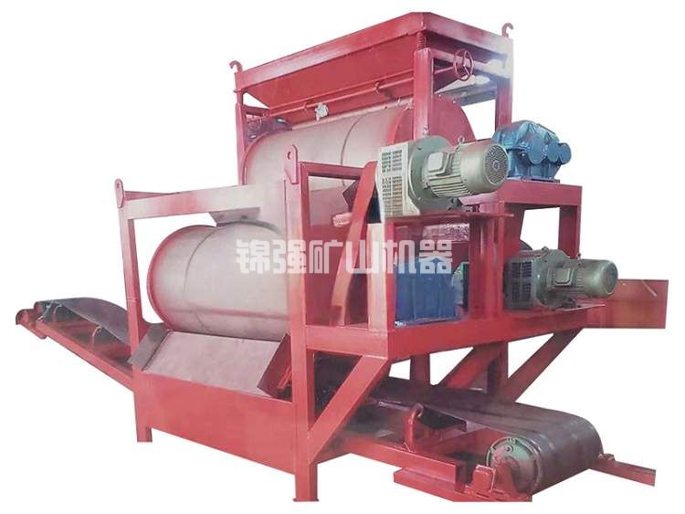 雙輥干式磁選機由機架、機殼、料倉及下料調整機構、永磁輥、被動輥、傳送帶、無級變速傳動裝置、振動給料機等組成,雙輥干式磁選機結構緊湊,體積小,重量輕,耗電少,節省能源。雙輥干式磁選機采用振動給料機喂料,給料均勻,給料多少可調,無級變速可根據物料粒度大小調整磁輥轉速,粒度大轉速小,粒度小則轉速高,達到最佳效果。